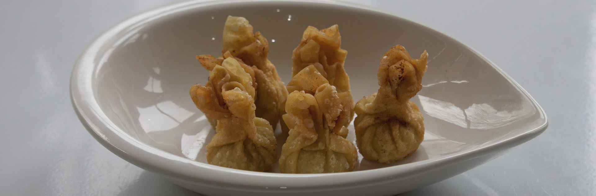 You will get your hands dirty making the dumpling dough, fill and shaping them to individual bite size before pan frying them. Incredibly moreish, especially when dipped into soya sauce.